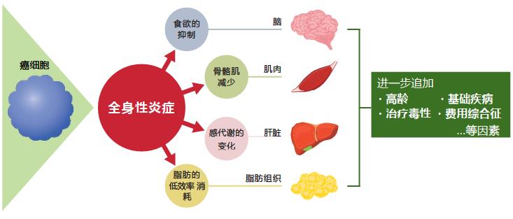 多器官、多因素与癌症恶液质的病态相关,治疗时要求多学科干预。