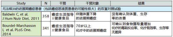 表4:对进展期癌症主要实施营养疗法的随机对照试验成绩