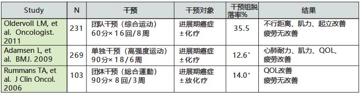 ● 对进展期癌症实施单独运动疗法的脱落率(12~35%)高。