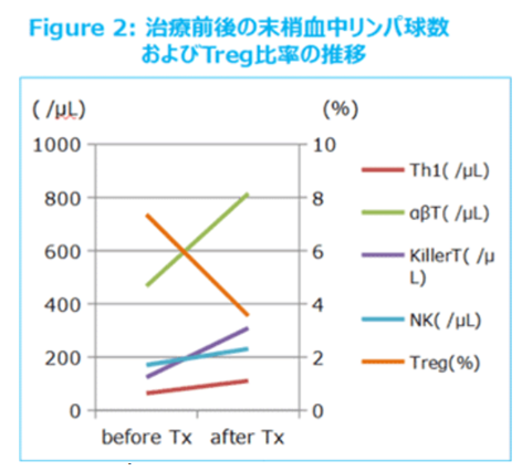 持续监测该患者的免疫细胞状态,如下图,免疫环境改善后,有利于抗癌的T细胞群落和NK细胞都在上升,免疫抑制细胞Tregs在持续下降。