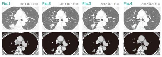 案例:60岁女性 无吸烟史 2011年1月诊断为T4N3M1a肺腺癌(肺内及锁骨上淋巴结转移)。2011年3月初开始CDDP+PEM+BV化疗,并切除了右锁骨上淋巴结,将切除淋巴结溶解制作DC疫苗,以待后用。至6月,CDDP+PEM+BV治疗4次,细胞疗法3次,发现肿瘤缩小(PR),随机停止联合化疗,7月开始维持治疗仅使用贝伐+细胞疗法,观察至2015年5月底肿瘤未进展。