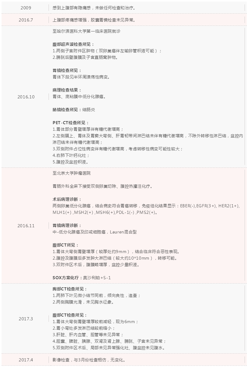 同年8月第一疗程结束,随访检查报告,影像无变化,肿瘤标志物无变化…身体感觉和以往无变化。