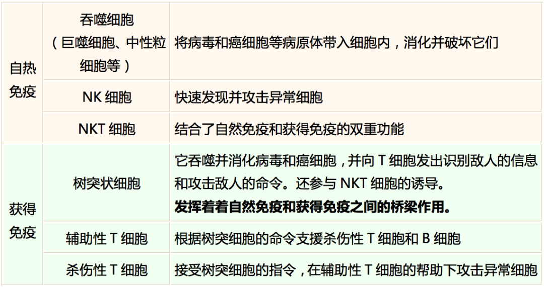 负责自然免疫(先天性免疫)和获得免疫(后天性免疫)的细胞是不同的。它们在识别癌细胞的方式上也有所不同。