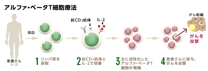 ⇒αβT细胞疗法,即免疫细胞疗法的一种,就是试图通过在体外激活和增加这些淋巴细胞,并将其送回体内以补充T细胞攻击癌细胞力量的一种治疗方式。