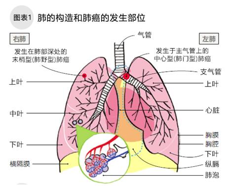 肺癌是发生在气管、支气管、肺泡细胞上的癌变,从肺癌的发生部位可将其分为中心型肺癌和末梢型肺癌,从组织分型上可将其分为小细胞肺癌和非小细胞肺癌。