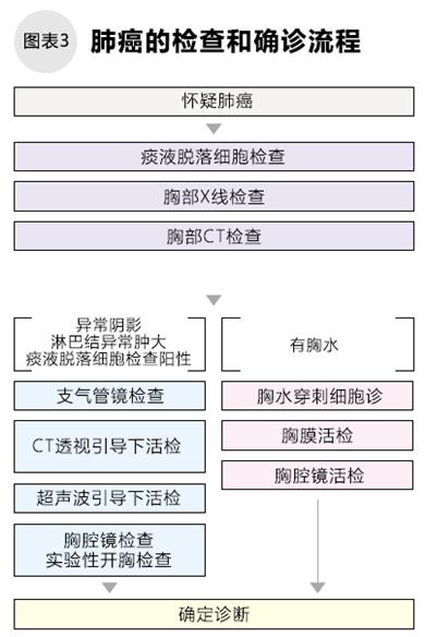肺癌确诊时除了胸部X线、痰液脱落细胞检查、胸部CT、支气管镜检查外,根据具体情况可能会追加胸水细胞诊断检查,疑似肺癌时通过病变组织活检来做出最后的确诊。