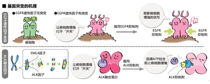 虽然人类的进化和子代的差异都离不开遗传基因的变化,但是对机体来说遗传基因的突变不是好现象。近些年开发了很多针对癌症遗传基因突变的药物,针对每位患者的基因突变情况提供个体化诊疗的时代已经来临,个体化诊疗很大程度上提高了治疗效果。针对肺癌,现在主要有EGFR和ALK两种靶点的治疗。