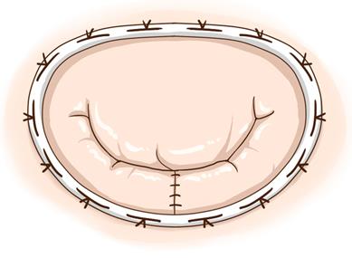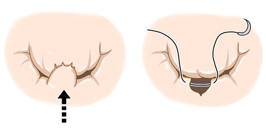 在二尖瓣关闭不全的案例中,一些瓣膜可能因为瓣膜退化要被移除,在这种情况下,取下异常瓣膜,拆开小叶,然后缝合切开的部分。