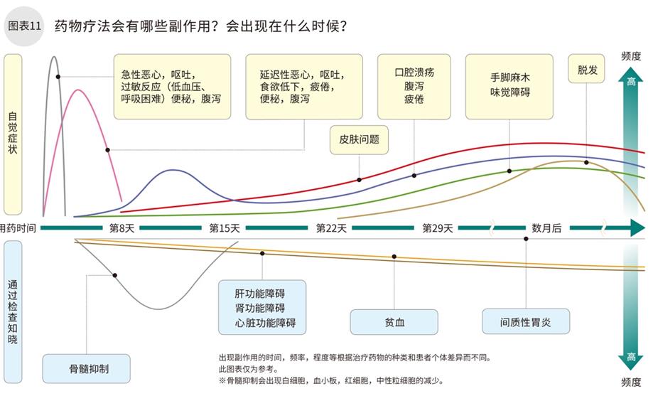 使用的化疗药物种类不同,副作用也会不同,并有较大的个体差异。所以,提前预测将会发生的副作用,以及在发生副作用时的处理方式尤其重要。
