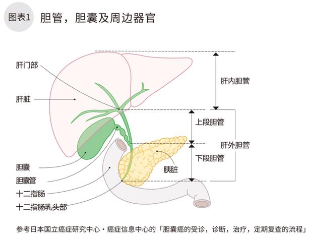 胆道是运送胆汁的管道,是胆囊,胆管,十二指肠乳头部的总称。发生在这些部位上的恶性肿瘤被称为胆道癌(图表1)。