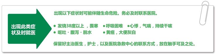 患者在接受药物疗法之前,需要提前确认:将会出现哪些副作用?怎样处置?什么情况下需要就医等问题。担心的话可以和主治医生,药剂师,护士等提前沟通,不能因为恐惧副作用而擅自中断治疗。