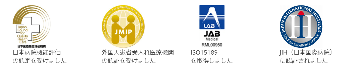 医院设立国际医疗部推进外国人患者的诊疗,并取得了接收外国患者医疗机构认证制度(JMIP)的认证。被评为日本国际医院(Japan International Hospital)。