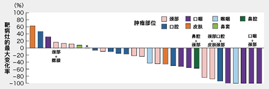 在开始治疗的5周内,还有3名(10%)患者发生了导致死亡的严重不良事件(肿瘤出血、动脉出血、肺炎)。 这些事件发生在最后一次治疗后19天以上,似乎主要与肿瘤反应或肿瘤侵犯血管有关,不被认为是治疗本身导致的不良事件。