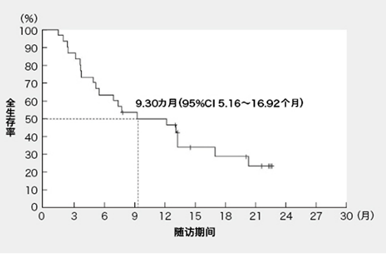 中位总生存期(OS)为9.30个月(95% CI:5.16-16.92个月)。