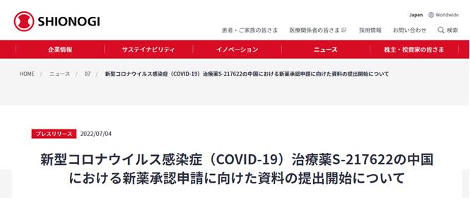 根据日本新闻报道,日本盐野义制药公司近日发布消息称,关于正在研发的新冠病毒治疗药,已经向中国监管机构提交临床试验数据以申请新药上市许可。