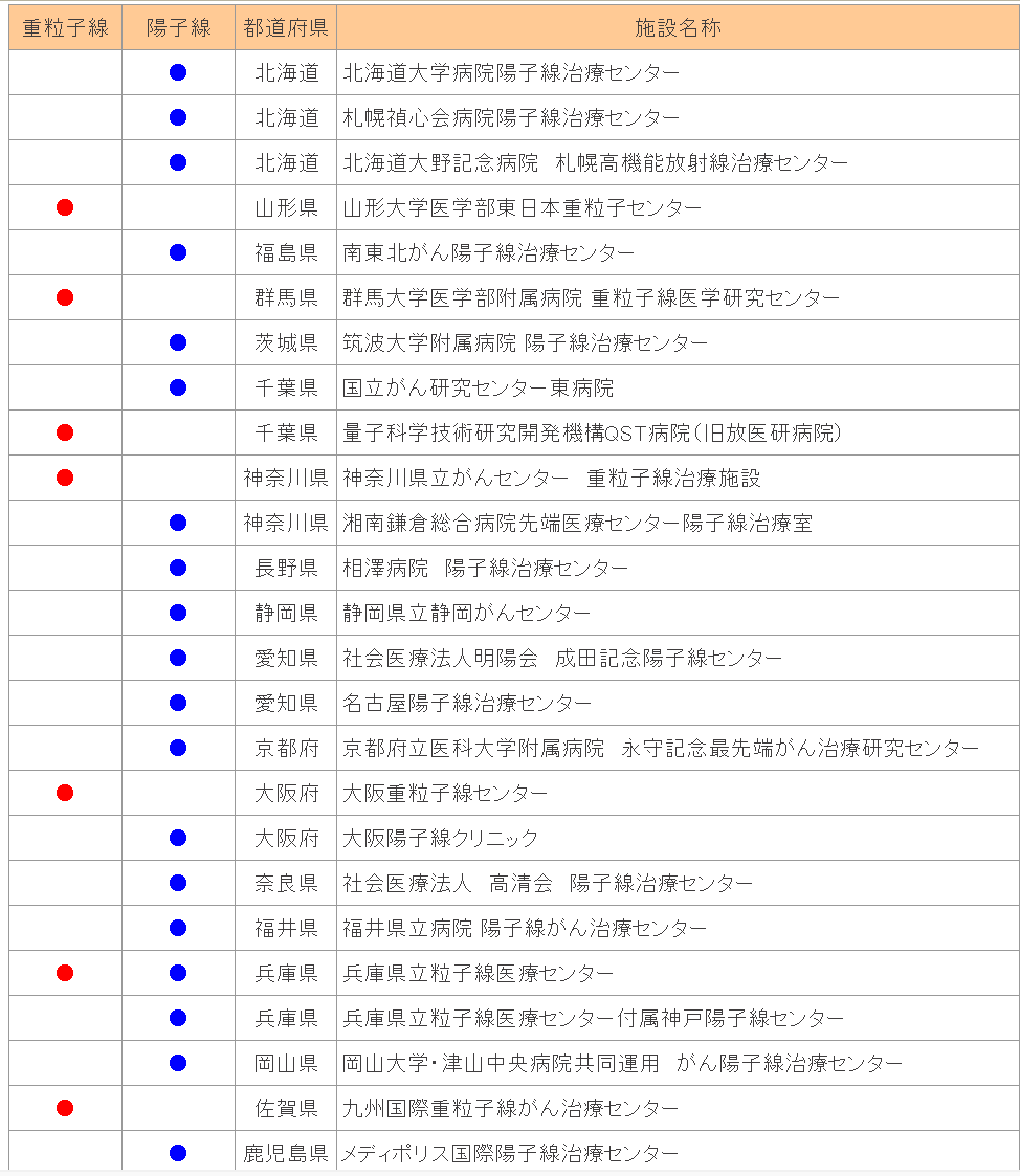 日本质子治疗的先驱是筑波大学医院质子治疗中心(茨城县筑波市),于1988年开始治疗。稍后,国立癌症中心东院也引进了设备。至此,质子治疗机构的数量逐渐增加到目前的19个(日本国内)。