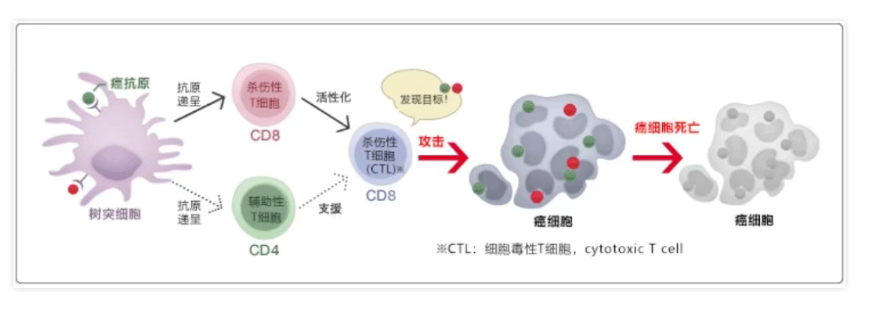 树突细胞是已知体内功能最强、唯一能活化静息T细胞的专职抗原提呈细胞,相当于免疫系统的司令部,它能够识别癌细胞,并将癌细胞的抗原呈递给T淋巴细胞,催生CTL细胞,使数量庞大的淋巴细胞能够识别和攻击癌细胞。因此,通过大量体外活化培养负载肿瘤抗原的树突细胞,当细胞数量达到一定数量后回输给病人,可诱导机体产生强烈的抗肿瘤免疫反应。