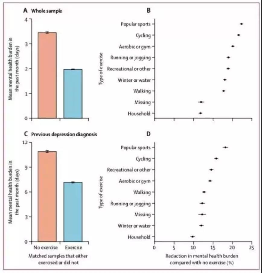 虽然排名有先后,但运动对维持心理健康都是有益的。
