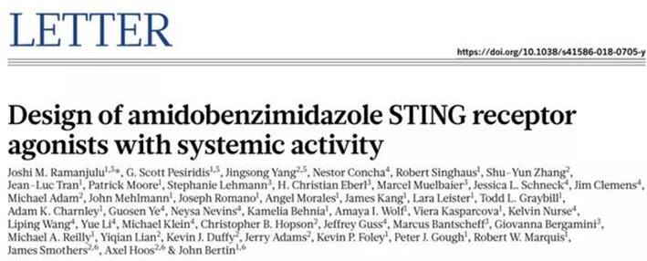 以全球知名药企葛兰素史克 Joshi M. Ramanjulu 教授为首的 44 名科学家,于11 月 9 日在Nature 杂志刊发了一项新成果,共同发现了一种小分子 STING 激动剂,有望开启肿瘤taptap点点网页登录的全新里程碑。