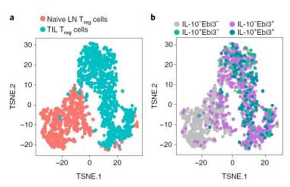 在此次的研究中,研究员DeepaliSawant博士和他的团队在小鼠和人类肿瘤组织中发现,肿瘤微环境中的调节性T细胞(Tregs)可以产生IL-10或IL-35,但令人惊讶的是,它们并不能同时产生IL-10或IL-35。