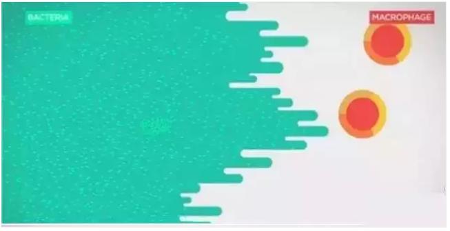 它们还会击晕细菌,使它们变成更容易的目标,他们的后面是专门连接杀手细胞的巨噬细胞。