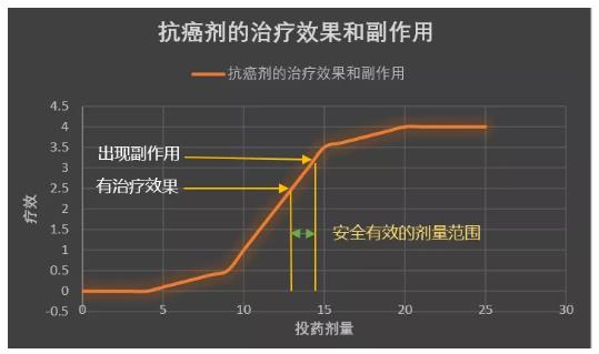 抗癌剂的种类以及药量,要同时考虑治疗效果和副作用,须谨慎使用。既能对治疗有效又很少出现副作用的剂量范围本身非常狭窄,如表2。