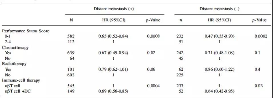 ・免疫细胞疗法和化疗联合,与单用化疗组别对比,统计结果有临床意义(P=0.0023)。