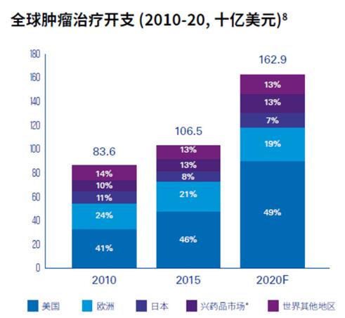 随着日益增长的癌症发病率,有限的医疗预算与巨额的肿瘤治疗开支是一个矛盾点,寻求肿瘤治疗的新技术成为解决这一问题的关键。事实上,肿瘤的治疗成本在全球范围内都是远高出其他疾病。根据毕马威中国报告,全球肿瘤治疗费用在2015至2020年期间将增长53%,除非治疗方法发生彻底改变,这种涨幅将保持到2030年及后续年份。