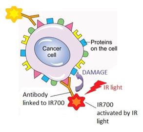 作为一款光免疫疗法,Rakuten的ASP-1929由西妥昔单抗(cetuximab)与IRDye700DX构成的抗体偶联药物(ADC)。它的抗体部分靶向表皮生长因子(EGFR)。EGFR表达于多种类型的实体瘤细胞表面,包括头颈部鳞状细胞癌、食道癌、肺癌、结肠直肠癌、胰腺癌和其它癌症。
