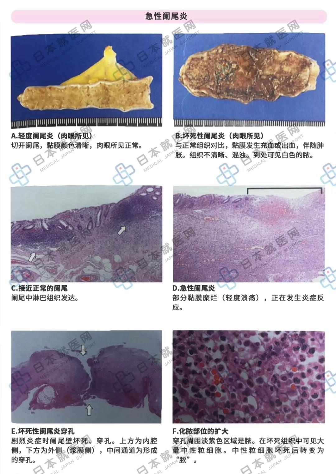 即使急性炎症反复后变为慢性阑尾炎,在切除后的病理诊断上只能就急性阑尾炎诊断,而很难诊断慢性。从结果上来讲,诊断名只有“急性阑尾炎”一种说法。在临床上,被诊断为阑尾炎,经切除后做病理诊断时,约有20%不是炎症,病理医生私下称其为正常阑尾炎。