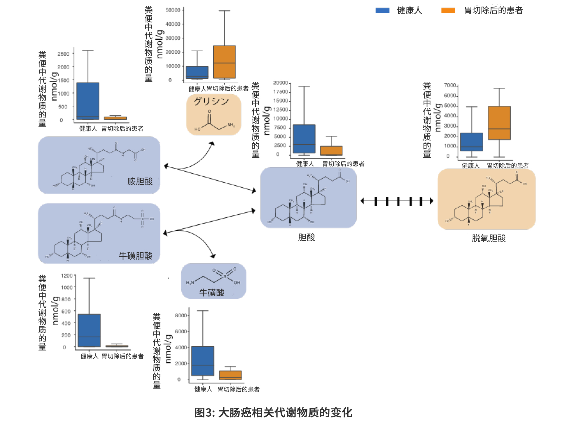 该研究项目纳入胃癌术后患者50例/健康人56例,共计106位试验者。通过调查他们的饮食等生活习惯,收集冷冻粪便样品,大肠内窥镜检查诊断,以及肠道菌群等临床信息进行分析和比较,探究胃切除患者特有的肠道细菌和代谢物质。结果发现:胃癌根治术及术后消化道重建术,会对肠道环境产生很大的影响。