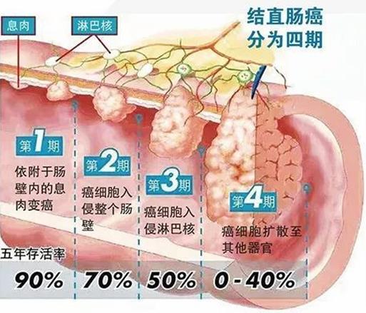 结直肠癌从早期发展到晚期大约需要10年时间,而早期结直肠癌治愈率可达90%!但结直肠癌的症状较隐匿,在疾病的早期,甚至疾病的晚期阶段,患者也没有明显的症状,以至于许多患者在确诊时已到中晚期,治疗效果大打折扣。
