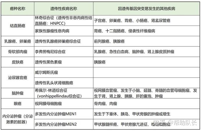 主要的遗传性癌症(肿瘤)如下表,该表并没有网罗所有遗传性癌症的疾病名称。