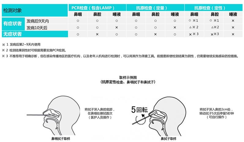 随着新的检测技术的发展,现在除了使用鼻咽拭子外,还可以使用唾液检测或鼻拭子,这取决于检测的类型和症状。