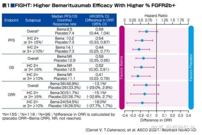 截至目前,临床试验随访患者的中位数为12.5个月,无论FGFR2b在肿瘤细胞中占比,用药组总生存期的中位数达到19.2个月,安慰剂组为13.5个月。其中FGFR2b在肿瘤细胞中超过10%的患者,用药组的OS为25.4个月,疗效显著。