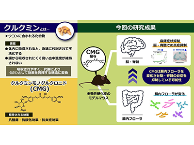 姜黄通过小鼠的肠道细菌抑制大脑和脊髓的炎症-京都大学等机构的研究