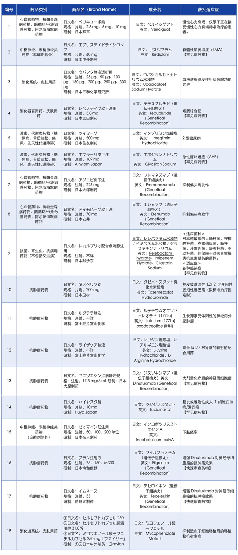 2021年6月日本PMDA批准新药一览